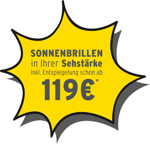 Erleben Sie höchsten Sehkomfort mit einer Sonnenbrille inkl. entspiegelten Gläsern in Ihrer Sehstärke – und das schon ab 119 €*!